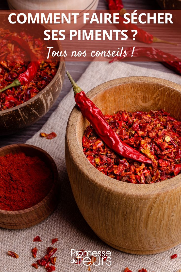 Il existe plusieurs méthodes pour bien faire sécher vos piments. Après séchage, les piments doivent être uniformément secs, mais pas durs comme de la pierre, ils doivent rester assez souples. Lorsqu'ils sont bien secs, vous pouvez alors soit les réduire en poudre ou les conserver en l'état.