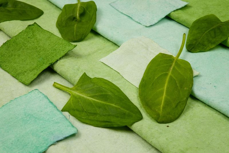 - Les feuilles de menthe : pour teinter les tissus du vert tendre au vert foncé.