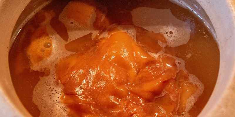 • L'eau va commencer à se troubler : les fruits entiers et/ou les épluchures fermentés créent une "mère "à la surface, ce fameux dépôt formé dans la fabrication maison du vinaigre de vin