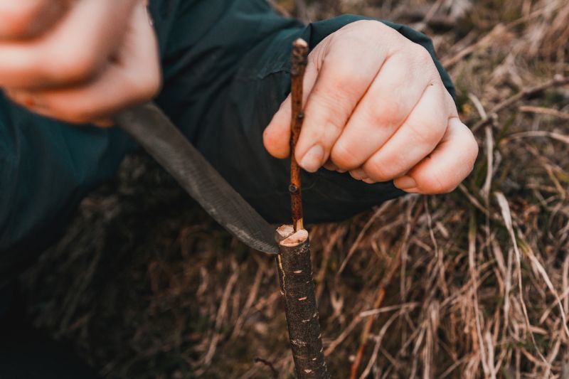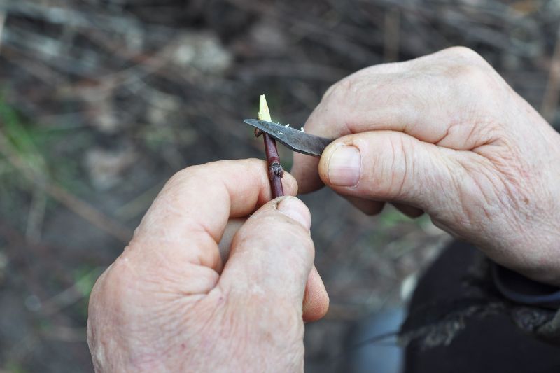 Alternative : On peut aussi réaliser un greffage en écusson : Idéal pour les petites branches, cette technique implique de prélever un écusson (un bourgeon avec un petit morceau d'écorce) du greffon et de l'insérer sous l'écorce du porte-greffe. Faites une incision en T sur le porte-greffe, insérez l'écusson, puis liez vigoureusement avec du raphia.