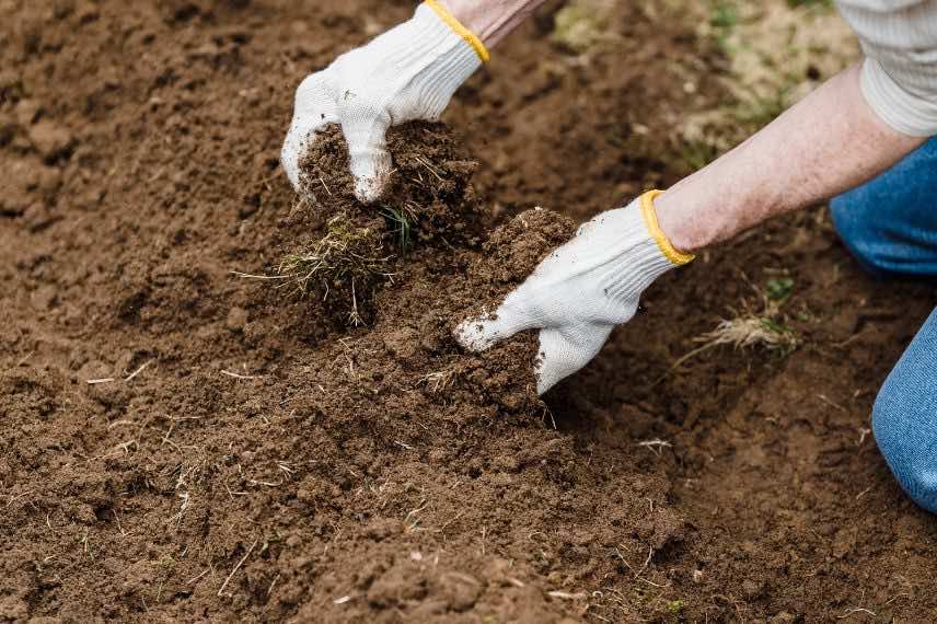 - Travaillez l’emplacement dédié aux futurs semis en retirant les herbes, végétaux et éventuels gros cailloux ou morceaux de bois. Si votre terre est lourde, décompactez les mottes et ajoutez du sable pour le drainage. Si votre terre est très légère, mélangez-la avec du terreau ou du compost ménager bien mûr.