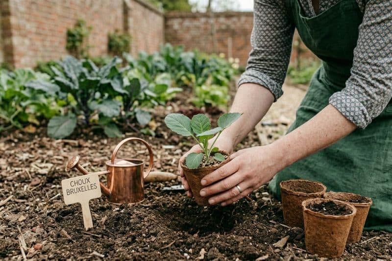 Le repiquage des choux de Bruxelles en pleine terre intervient lorsque les plants atteignent environ 15 cm de hauteur, soit 4 à 6 semaines après le semis.