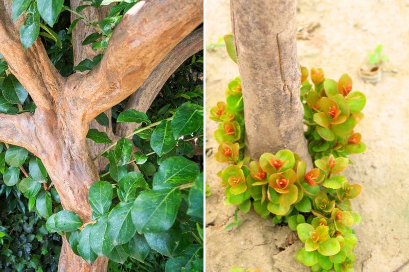 Les rejets, ou drageons, sont de petites pousses qui apparaissent à la base du tronc ou des racines. Ils doivent être retirés dès qu’ils apparaissent, car ils volent de l’énergie à l’arbre et nuisent à sa forme. Utilisez un sécateur pour les couper au ras du sol.