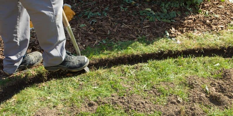 - Ensuite, retirez une bande de terre sur le contour du futur massif, en veillant à creuser sur environ 10 cm de profondeur et 20 cm de large. Alors certes, il y a un peu d'efforts à fournir ici, mais c'est la seule partie ardue ! Courage ! De plus, cette action a plusieurs avantages :