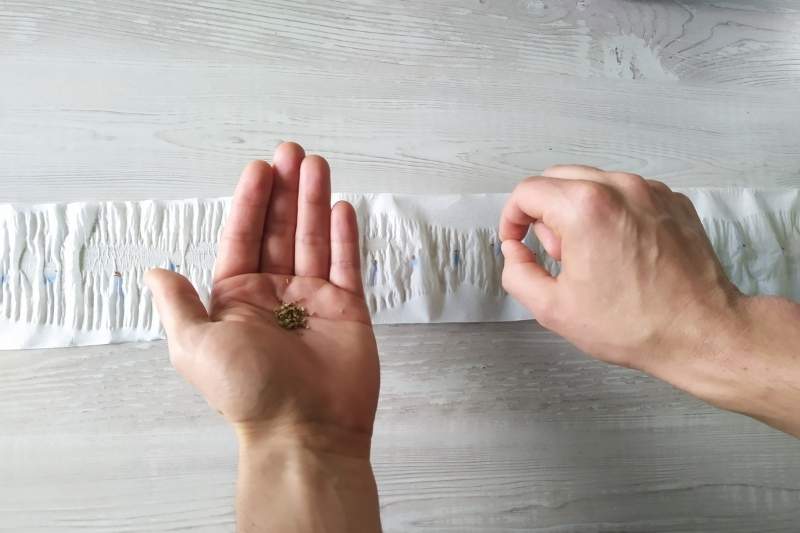 5- Rabattez le papier toilette des deux côtés sur les graines et tapoter le papier.