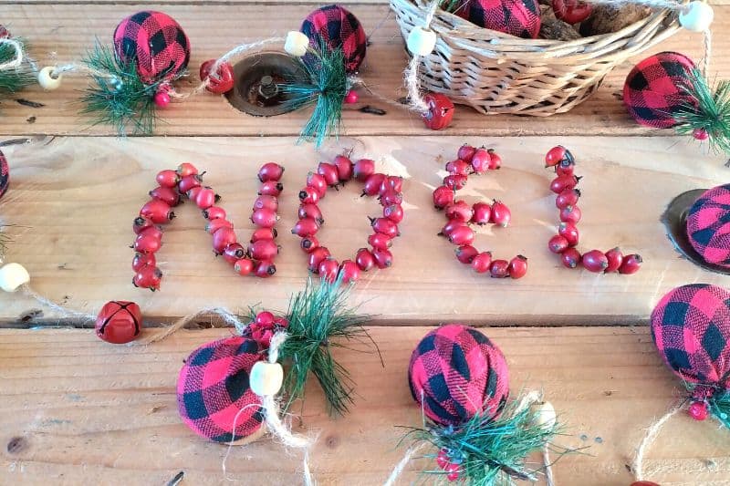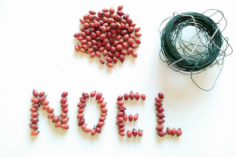 Création du mot "Noël" en cynorrhodons
