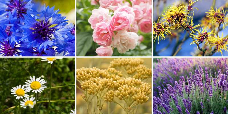 Les fleurs les plus couramment utilisées pour la fabrication d'eaux florales sont la rose, la camomille, le bleuet, et l’hamamélis, mais on en trouve aussi d’autres intéressantes, souvent à portée de main au jardin. Chacune de ces fleurs a ses propres bienfaits, et pourra s’utiliser pour nettoyer ou démaquiller la peau, la tonifier ou et même l’hydrater :