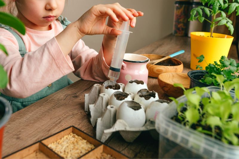 - Lorsque les pousses deviendront à l'étroit dans leurs coquilles, pensez à les transplanter dans un plus grand pot. Cela sera l'occasion de faire un second atelier ludique en famille !
