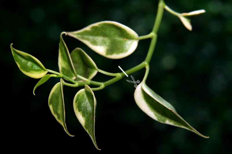 - Prélevez une tige d'Hoya de 10 à 12 cm, munie d’au moins deux nœuds. Retirez les feuilles du bas.