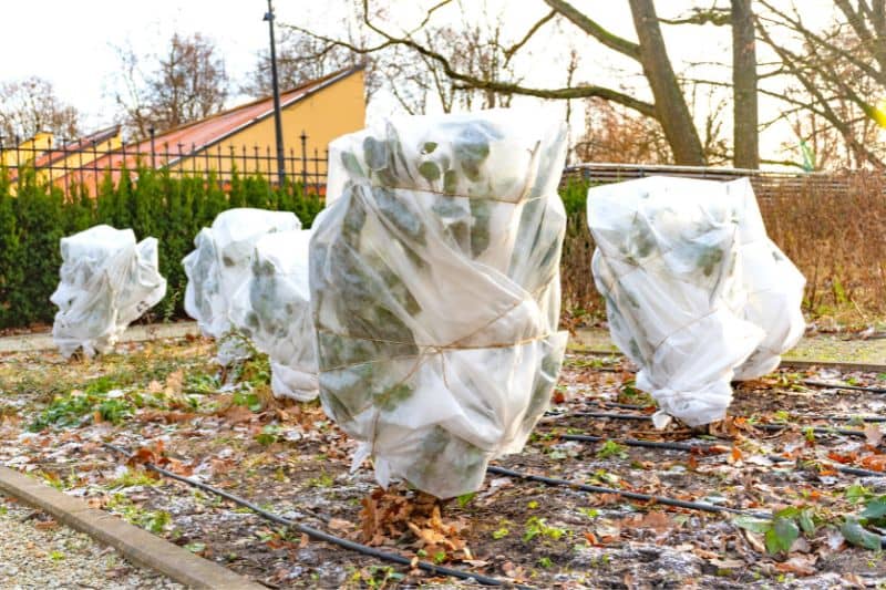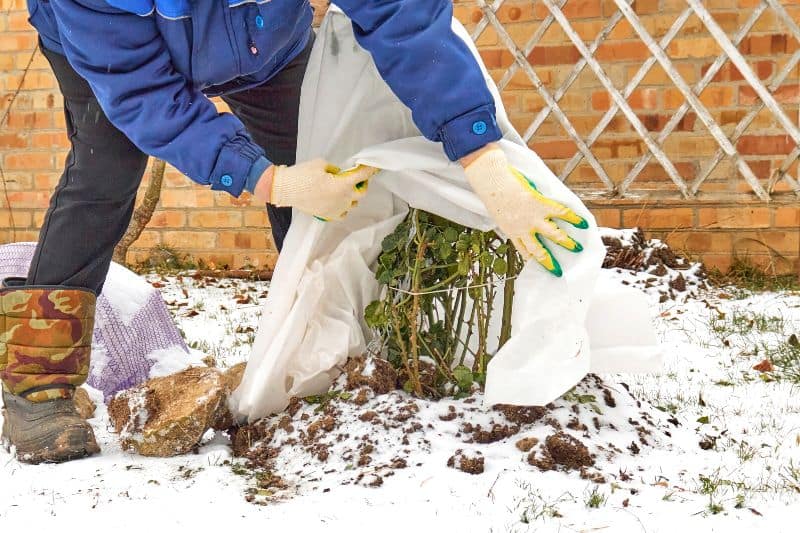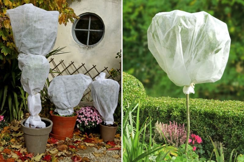 4- Emballez les parties aériennes, voire également le tronc, avec un voile d’hivernage, en prenant soin de ne pas casser les rameaux.
