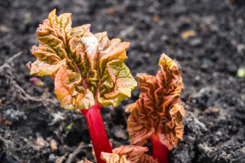 Les jeunes plants de rhubarbe