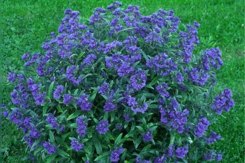 Le Caryopteris 'Petit Bleu' au port arrondi et à l'abondante floraison bleu intense