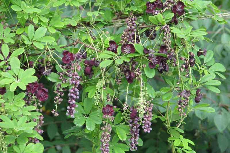 - pour réduire son envergure au bout de quelques années : en effet, l’Akebia est une liane de croissance et de développement vigoureux, atteignant rapidement les 6 m de long, jusqu’à parfois une dizaine de mètres au bout de dix ans. Il pousse aussi en épaisseur, produisant un feuillage dense et s’étale jusqu’à 3 m de largeur quand il a un support adapté. Lorsque l’espace est limité autour de la pergola ou de la treille, il est alors conseillé de limiter son expansion.