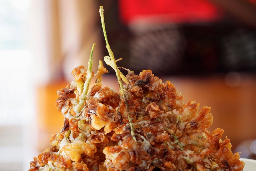 Faites légèrement égoutter les fleurs pour éliminer le surplus de pâte et trempez immédiatement dans l'huile chaude.
