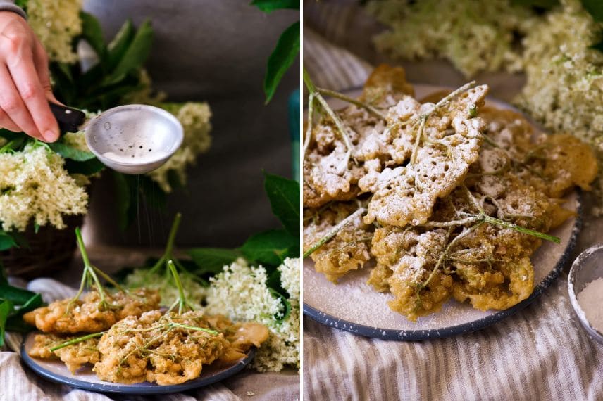 Les beignets de fleurs de sureau sont cuits quand ils revêtent une légère couleur brune.