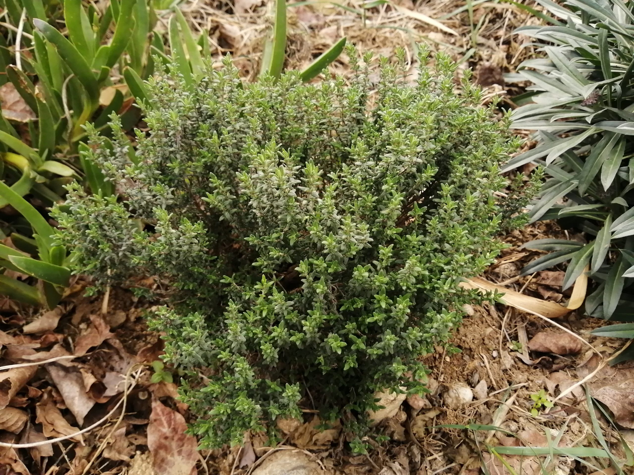 - Avec la main, couchez légèrement les tiges de thym pour bien voir le pied