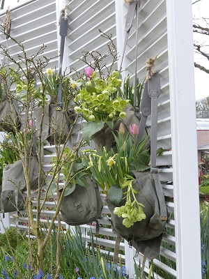 Enfin, parce que rares sont les heureux jardiniers à la tête d'un domaine aussi grand que le Keukenhof, on peut aussi y découvrir de petits espaces qui reproduisent des jardins et même des balcons miniatures où chacun peut piocher de bonnes idées à recréer dans son propre lopin. En particulier, de nombreuses idées d'utilisation de bulbes en pots, entendez par pots toutes caisses, pot-à-lait, passoires, brocs et autres accessoires détournés dans un but décoratif ! Voyez vous-mêmes...